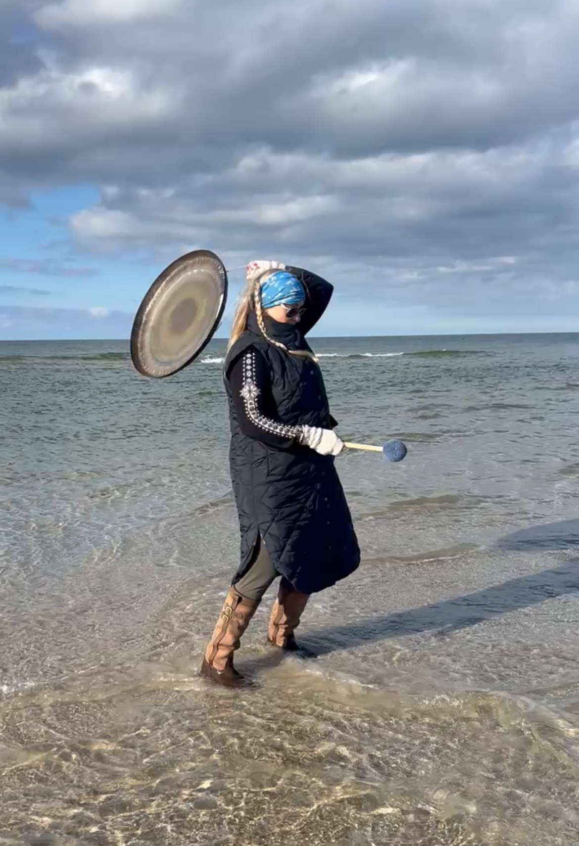Playing at Grenen in Skagen, at the very tip of Denmark, as far north as it is possible to go in our country; Two oceans meet here and I'm literally having one foot in each ocean and a Neptune Gong in the middle!